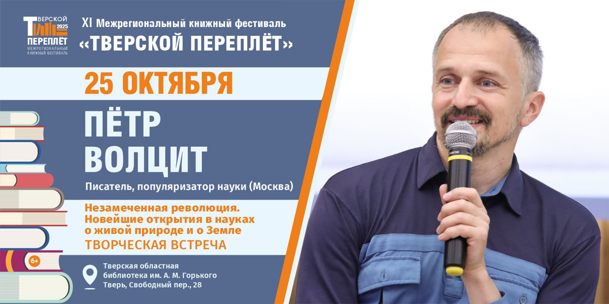 И 25 октября состоится творческая встреча с автором научно-популярных книг, популяризатором науки Петром Волцитом. Это будет разговор о том, как современная наука ломает школьные догмы и предлагает по-новому взглянуть на наш дом — планету Земля.